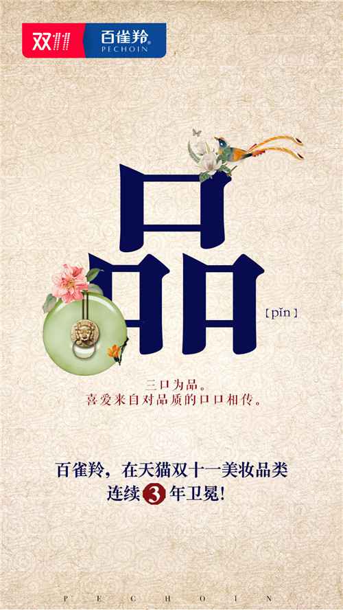 百雀羚以匠心精神将东方大美融入文化、产品、包装、营销。今年8月,百雀羚86周年品牌盛典提出“东方有大美”;9月,联合京剧余派坤生王珮瑜提出“认真你就赢了”;10月,首次跨界珠宝,联手故宫文化珠宝首席设计顾问钟华打造“东方簪”,提出“认真,让东方更美”。“认真”与“东方美”无疑是百雀羚的最佳注脚。可以说,所有百雀羚人的匠心协力,成就了东方之美,也成就了百雀羚在今年双十一的成绩。
